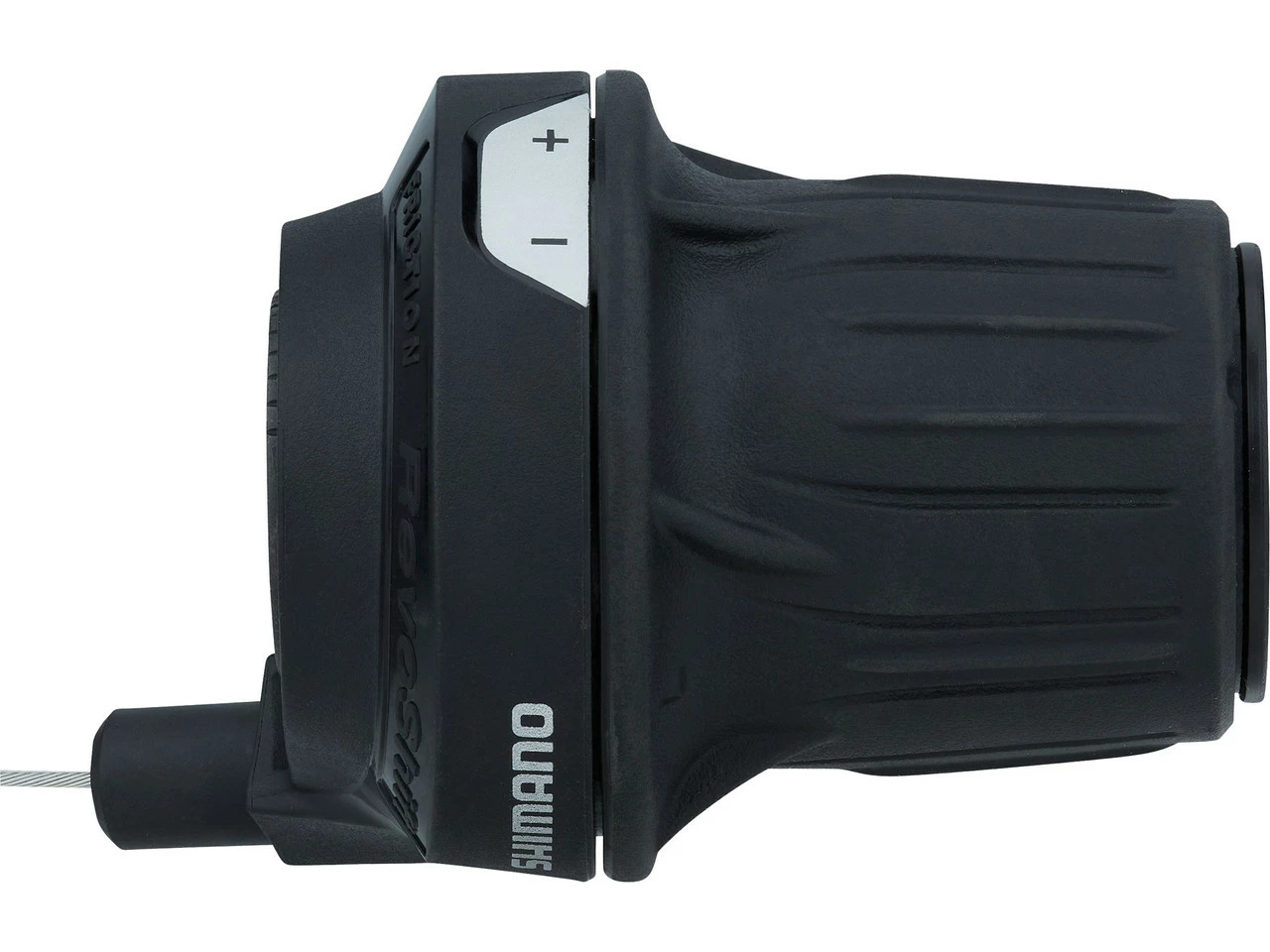 Shimano Revoshift-Schaltgriffe werden zum Schalten einfach zwischen Daumen und Zeigefinger gedreht, sodass der Lenker fest im Griff bleiben kann. Diese einfache, sichere Art des Schaltens kommt besonders Gelegenheitsfahrern und Kindern entgegen. Die gestufte Form des Drehschalters sorgt dafür, dass er sich unabhängig von der Handgröße problemlos betätigen lässt.